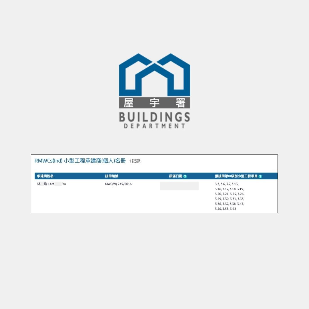 屋宇署註冊小型工程承建商: